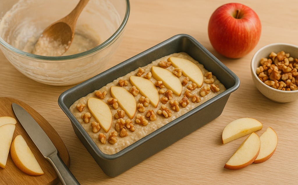 A tender, cinnamon-spiced loaf marrying sweet apples with earthy walnuts—simple ingredients transformed into something beautifully whole.