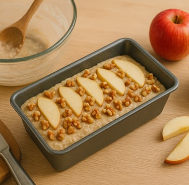 This loaf belongs to the American tradition of "quick breads" that emerged in the mid-1800s with the invention of chemical leavening agents like baking soda and baking powder, revolutionizing home baking by eliminating the need for time-consuming yeast fermentation. During the American Civil War, these quick breads became essential as they required less skilled labour and could be prepared reliably despite shortages. Apple and nut loaves evolved from this practical tradition—dessert breads created for easy transport and enjoyment on any occasion. The pairing of autumn apples with walnuts became a beloved expression of harvest gratitude, transforming simple pantry provisions into nourishing celebrations shared across generations at American family tables.