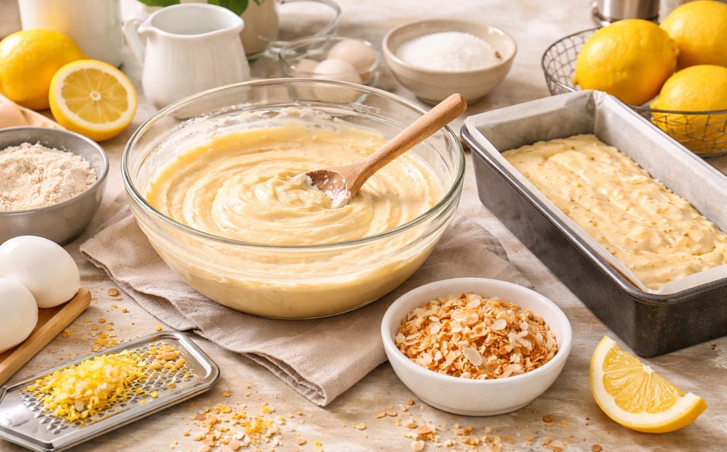 This Lemon and Toasted Coconut Pound Loaf is a quiet heir to that tradition. The lemon brings spring to the table -its zest folded into the butter and sugar until the bowl smells like a grove in full bloom. The coconut, toasted until it crosses from pale to amber gold, contributes a depth that raw coconut never quite achieves: nuttier, more complex, a little smoky at its edges. Together, they transform a classic structure into something seasonal and celebratory, the sort of loaf you set on the counter on a Saturday morning and watch disappear by afternoon.