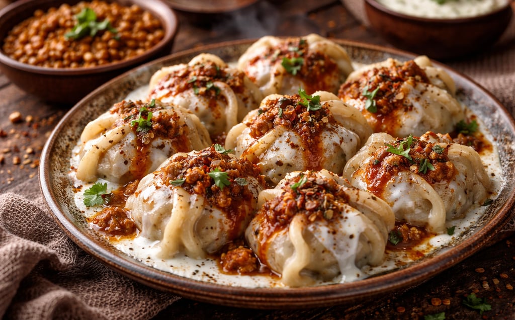 He guided us through what turned out to be a narrow defile we'd never have found ourselves, then to a sturdy stone shelter built into the mountainside. Inside, his extended family- his wife Amina Jan, elderly mother Waghma, four children, and his brother's widow Shameem shared their cramped space without hesitation. His wife immediately began preparing food, and they shared what they had- ‘mantu’ dumplings filled with spiced ground meat and minced onions, served steaming hot with thick yogurt sauce and a hearty lentil dish. The shepherd's wife poured endless cups of ‘kehwa’, green tea fragrant with cardamom, cinnamon, and cloves, while their children stared at us with enormous, curious eyes but asked no questions.