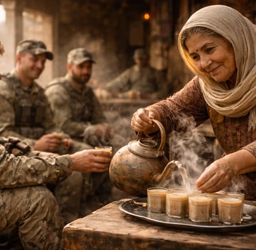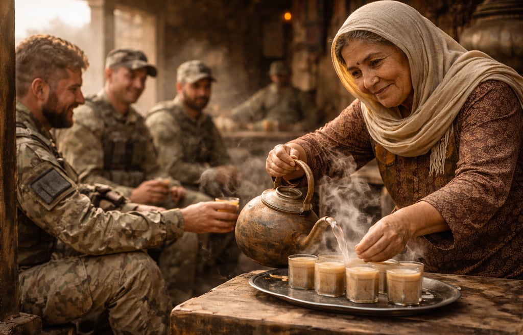 Bibi Fatima ran a small, immaculately clean chaykhana, a traditional tea house near our forward operating base, serving sweet, milky shir chai with cardamom and her specialty naan-e-roghani, the beautiful oil-brushed bread that glistened golden in the morning light. She was seventy years old if she was a day, her face deeply lined by decades of war and loss, widowed three times by conflict, yet her spirit remained somehow, impossibly unbroken. Her eyes still sparkled with life and determination.